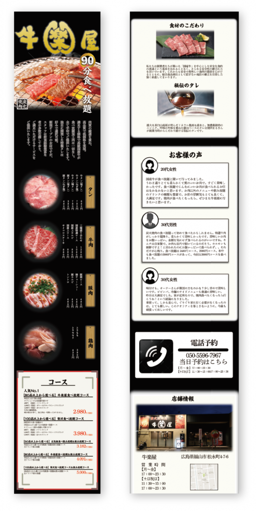 牛楽屋 WEB LP 投稿者: wpmaster オフ ターゲットは。30歳男性、職業は会社員です。高級感と店の薄暗い雰囲気を出すため背景を黒にして制作しました。 サイトを確認する 投稿ナビゲーション 過去の投稿前へ 杉野屋 WEB LP次の投稿次へ 終了制作